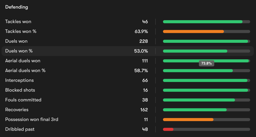 As said, Billing’s performances were solid. They weren’t amazing, nothing to massively standout, but his game was very different back then, mainly in the team for defensive contributions. And those contributions were good, on paper, as shown in the image below.